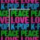 Peace Love K-Pop. A cool neon pink, green, and blue Kpop fabric for a fan of hot Korean pop music. Fun and cute.