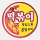 This round Korean Tteokbokki sticker features a fun and playful design with bold Korean text and a delicious illustration of spicy rice cakes.