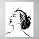 Stylish ink portrait of a Korean woman in profile with red lips and hair ornaments. Minimalist line art combining elegance and cultural beauty.