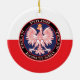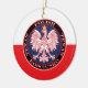 This colourful round design features the Polish Eagle with a gold crown, the coat of arms of Poland on a Texas Flag coloured blue background, surrounded by the words Polish Texan and Kosciusko.