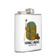 The flask itself is fine. It’s a cheap flask, obviously bought in bulk, however am prepared to overlook that. Given that it is a personalized item, I would have liked to have seen gift boxing instead of the generic packaging. Terrible printing, and/or quality. It’s a cheap, tacky vinyl. It is not cut straight and is also applied in a way that it is overhanging the bottom, causing the glue to catch on items and it will eventually roll and tear, damaging the wrap.