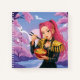 KPop Demon Hunters Mira Fanart with Chopsticks, Ramen, Pink Trees, Clouds with Blue Purple Background. Design by Sara Motolanez