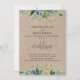 This kraft foliage with monogram and details backing wedding invitation card is perfect for a rustic wedding. The design features a frame of green leaves and leafy greenery botanicals on a faux kraft paper background. Save paper by including the wedding details on the back of the wedding invitation instead of on a separate insert card.