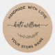 Kraft Handmade with love script typography effects product label with rustic laurel leaf. Perfect for baked goods, handmade item and crafts.