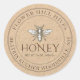 This kraft honey label is completely editable. Beekeepers can add in the name of their honey business, their own name, and the city and state of their apiary. Net weight conversions of popular honey jar sizes are listed in the Net Weight form field. Vintage illustration of a white honeybee on a kraft background with a double border.