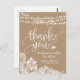 Kraft lace and lights rustic thank you postcard to send out to your wedding guests!