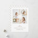 Modern & minimal Christmas holiday card. Our design featuring our modern kraft paper Christmas tree pattern that decorates the back of the holiday card. The front of the holiday card features a modern 3 photo layout to display three of your favourite family photos. Add the year inside our modern white snowflake design. Customise with your family's signature. Artwork by Moodthology Papery.