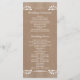 Fall wedding ceremony and party program with elegant white leaves and stripes in vintage style on kraft cardboard paper. A customisable template perfect for a contemporary autumn wedding.