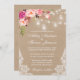 Kraft Rustic Wedding Mason Jar Lights Lace Watercolor Pink Blush Floral Invitation