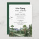Invite your loved ones to celebrate your elopement with this rustic Rocky Mountain reception invitation. Featuring a beautifully painted wilderness landscape with watercolor pine trees, soaring birds, and majestic mountains, the design is set against a faux light kraft paper background for a natural, outdoorsy feel. RSVP cards are available separately.