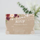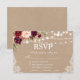 Kraft Rustic Wedding String Lights Lace Watercolor Burgundy Floral RSVP Card with Meal choices