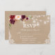 Kraft Rustic Wedding String Lights Mason Jars Lace Watercolor Burgundy Marsala Floral RSVP Card with Meal choices