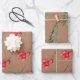 Kraft paper texture background watercolor painted berries and greenery leaves Winter Holiday Wrapping Paper.