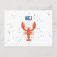 Crayfish design with blue dots and Swedish language message (hej, meaning hi in Swedish). Card is blank inside for your own message.