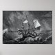 Kraken Attacking Ship vintage etching Poster