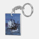 A watercolor painting of a Kraken attacking a ship adorns this customisable keychain!