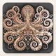 Kraken Steampunk Octopus Ornate Gold Black Square Paper Coaster