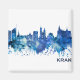 Blue Watercolor Skyline of Kraków, a southern Poland city near the border of the Czech Republic