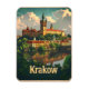 A charming and nostalgic depiction of Krakow, Poland, showcasing its rich historical and architectural heritage. The design features the city's iconic landmarks such as Wawel Castle, St. Mary's Basilica, and the bustling Market Square, all illustrated in a vintage style. This artwork captures the timeless beauty and cultural richness of Krakow, inviting viewers to explore its storied past and vibrant present.
