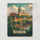 A charming and nostalgic depiction of Krakow, Poland, showcasing its rich historical and architectural heritage. The design features the city's iconic landmarks such as Wawel Castle, St. Mary's Basilica, and the bustling Market Square, all illustrated in a vintage style. This artwork captures the timeless beauty and cultural richness of Krakow, inviting viewers to explore its storied past and vibrant present.