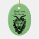 This stunning oval ceramic Christmas ornament is the ultimate addition to any collection of unique and slightly mischievous holiday decor. Featuring a bold and intricately detailed image of Krampus, the legendary Christmas figure from Alpine folklore, this ornament is perfect for those who love blending traditional holiday decorations with a darker, more mysterious edge. Krampus, with his curling horns, wild eyes, and infamous lolling tongue, is set against a rich, Christmasy green background, creating a striking contrast that immediately draws attention. Below his fearsome visage, the words "Gruß vom Krampus" (Greetings from Krampus) are printed in an elegant, old-world font, adding an extra touch of authenticity to this must-have Krampusnacht keepsake.