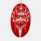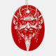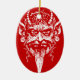Krampus head ornament, white on red