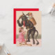 These bad children weren't ready for Krampus. This Krampus print depicts Krampus punishing two girls. A switch in one hand, a chain in another. A wicker basket on his back.