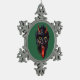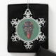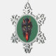 Krampus Snowflake Pewter Christmas Ornament. Make your Christmas tree or winter holiday decor a little more fun and unusual with this Krampus Christmas ornament. Give as a really cool gift to anyone who likes Krampus! This snowflake shaped xmas ornament features the devilish face of Krampus against a green background. Gruß vom Krampus!