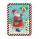 ALWAYS A FRIEND, KRIS KRINGLE SHARES TREATS WITH HIS TWEETS. CHRISTMAS SANTA MAGNET Rectangle, Red/White Stripe Border *Customise ...Look For Matching Items Susan Brack Design
