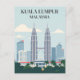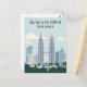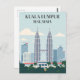 Discover the vibrant heart of Southeast Asia with this stylish Kuala Lumpur Malaysia postcard, showcasing the city's iconic skyline! This sleek modern art postcard features the majestic Petronas Twin Towers standing tall amidst a backdrop of contemporary skyscrapers and lush green palm trees, all under a serene blue sky. The clean lines and soothing colour palette make this postcard a refined tribute to the dynamic capital of Malaysia.