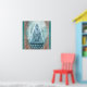 Bordered image of Kuan Yin, goddess of compassion in colours of teal, blue and brown