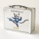 This is a standard metal lunchbox that appears to work just fine. We designed this box ourselves with an uploaded photo and custom text on the front and back. It looks absolutely beautiful except the front of the lunchbox is not centered like it shows in the photo. The print borders don't align with the inset flat part of the box where the preview photo online showed it perfectly centered in there. The back looks nice and centered though.