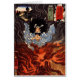 Here is Japanese artist, Kuniyoshi 1797-1861, piece of Warabi the third rest stop of the series, "The Sixty-Nine Post Stations"...Here Inuyama Dosetsu seated amid flames and smoke, hands clasped, in his mouth magic pine sprigs wrapped in paper. According to legend, knowing the wizardry of fire, he could take revenge on the murderer of his father and sister.
