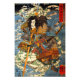 Kuniyoshi Samurai Print. Ukiyo-e woodblock from Edo Period Japan. Utagawa Kuniyoshi designed some of the most vibrant and impressive samurai paintings of the Edo period. His depiction of Shimamura Danjo Takanori features the samurai in full armour wielding his naginata while riding the waves of the sea on the backs of two blue crabs. The samurai has been hit by multiple arrows, but fights on fiercely with waves and crabs rising in the background. A great gift for fans of Utagawa Kuniyoshi, samurai paintings, and Japanese art.