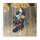 Kuniyoshi Three Women with Umbrellas tile. Ukiyo-e from Edo Period Japan. Utagawa Kuniyoshi designed some beautiful ukiyo-e tryptichs and Three Women with Umbrellas is one of his most playful and charming. The work depicts three Japanese women standing outside in a forest all holding yellow Japanese umbrellas while rain falls about them. The women are all barefoot and their expressions are happy and mischievious. A pretty gift for fans of Utagawa Kuniyoshi, Japanese Art, and Ukiyo-e.