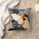 Kuniyoshi Woman with a Cat pillow. Ukiyo-e from Edo Period Japan. Utagawa Kuniyoshi frequently featured cats in his ukiyo-e woodblock printings. Woman with a cat features a Japanese woman in traditional nineteenth-century Edo period dress holding a big white and cream coloured cat. Behind her stands a painting of a fisherman battling a giant octopus on the ocean and two red emblems featuring Japanese kanji. A pretty gift for fans of Utagawa Kuniyoshi, Japanese art, and cat paintings.