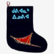 A dog sled with a red sled bag superimposed on a starry background. Inuktitut text reading "Kuvianak Innovia" (ᑯᕕᐊᓇᒃ ᐃᓄᕕᐊ - Merry Christmas), in the syllabic alphabet adopted in Nunavut, appears in glowing blue and white. You may personalise the stocking by adding a bit of text on the sled bag.