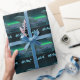 A peaceful moment in the long Arctic night. A Polar Bear rests at the edge of an open area in the pack ice. The Northern Lights glow in the distance; bright stars twinkle overhead. Inuktitut text reading "ᑯᕕᐊᓇᒃ ᐃᓄᕕᐊ" (Kuvianak Innovia - Merry Christmas), in the syllabic alphabet adopted in Nunavut, also appears in glowing blue and white. The Inuit are commonly referred to as Eskimo, but that term is now disfavored as it is considered to be pejorative. Polar bears are endangered. How much longer will scenes like this be able to occur? Please help save Polar Bears from extinction.