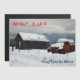 A wintry, rural scene featuring a snow-covered, dilapidated, old, red truck sitting near a ramshackle cabin near Sandpoint, ID. Text reading "ᑯᕕᐊᓇᒃ ᐃᓄᕕᐊ" (Kuvianak Innovia - Merry Christmas), in the syllabic alphabet adopted in Nunavut, also appears in red. Add your own additional text.