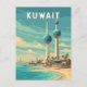 Kuwait retro vector travel design. From the futuristic Kuwait Towers and bustling souks to the serene Arabian Gulf coastline, Kuwait offers a blend of tradition, architecture, and Middle Eastern charm for travelers seeking something unique.