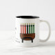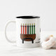 Personalise this Kwanzaa holiday mug with your own text. Image design of seven candles in traditional red,green and black on a white background.. Accented in the centre with a flourished heart doodle.Part of a collection of coordinating items in this same design at Monograms and Monikers on Zazzle.