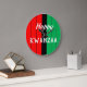 Happy Kwanzaa Typography Red Black Green Stripes Design based on the Kinara Striped Pattern African-American Celebration of African Cultural and Historical Heritage Wall Clock, you can change or delete all text