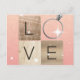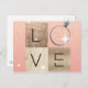 Celebrate love, romance and upcoming nuptials with this beautiful design that features wood letter tiles and an engagement ring to spell out the word LOVE.