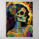A vibrant and festive La Catrina Day of the Dead Mexican Skeleton Art Poster
