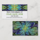 Faux stained glass leaves of green and turquoise frame a central flower in shades of blue and purple. Tuck one of these cards between the pages or in the case of your loaned books, CDs, DVDs and other media to make sure it finds its way back to you. Doubles as a bookmark for printed materials.