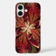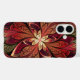 Phone case with "La Chanteuse Rouge" by Susan Wallace. Copyright © 2014, Susan Wallace. Faux stained glass leaves in shades of red, orange and gold frame a central flower of bright yellow in this intricate abstract piece.