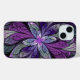 Case-mate iPhone case design from "La Chanteuse Violett," an Apophysis fractal by Susan Wallace. Copyright © 2014, Susan Wallace. Faux stained glass leaves in shades of bright purple, silver, periwinkle and violet frame a central flower of vibrant purple in this intricate abstract piece.