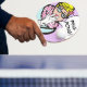 This La-Di-Da Lady Ping Pong Paddle is sure to bring a smile to the face of any ping pong lover. The design features a delightfully quirky woman with blonde hair piled on her head wearing a pink bow, cat-eye glasses, a pink and white zebra print collar and blue dress. One white gloved hand is resting on her pink lips as if she is suppressing a giggle. The speech bubble near her says, "Ping Pong!" The woman and speech bubble are both on a lavender and white background.