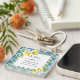 La Dolce Vita Mediterranean bachelorette weekend keychain. Celebrate your Mediterranean bachelorette weekend with these custom keychains, designed to capture the spirit of "La Dolce Vita." Personalise each keychain with your details. The design features a vibrant blue and yellow tile border reminiscent of Mediterranean coastlines. Artfully placed branches bursting with bright yellow lemons and blossoms frame the upper left and bottom right corners, adding a touch of elegant whimsy. This combination of lemons and florals perfectly embodies the warmth and citrusy freshness of the "sweet life."
