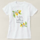 La Dolce Vita Mediterranean bachelorette weekend t-shirt. Celebrate your Mediterranean bachelorette weekend with these custom t-shirts, designed to capture the spirit of "La Dolce Vita." Personalise each one with your details. The design features artfully placed branches bursting with bright yellow lemons and blossoms at the upper left and bottom right corners, adding a touch of elegant whimsy.